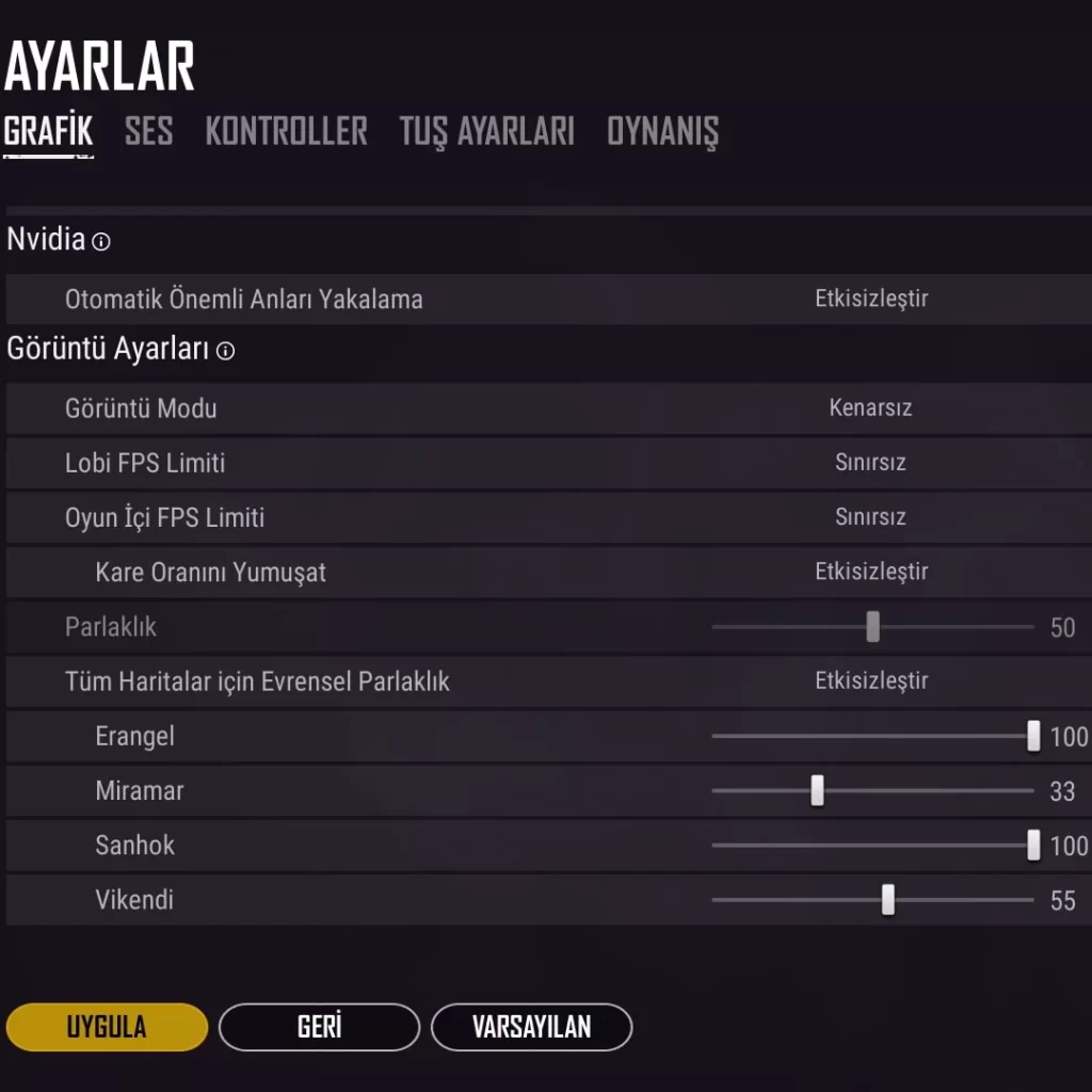 Grafik Ayarları