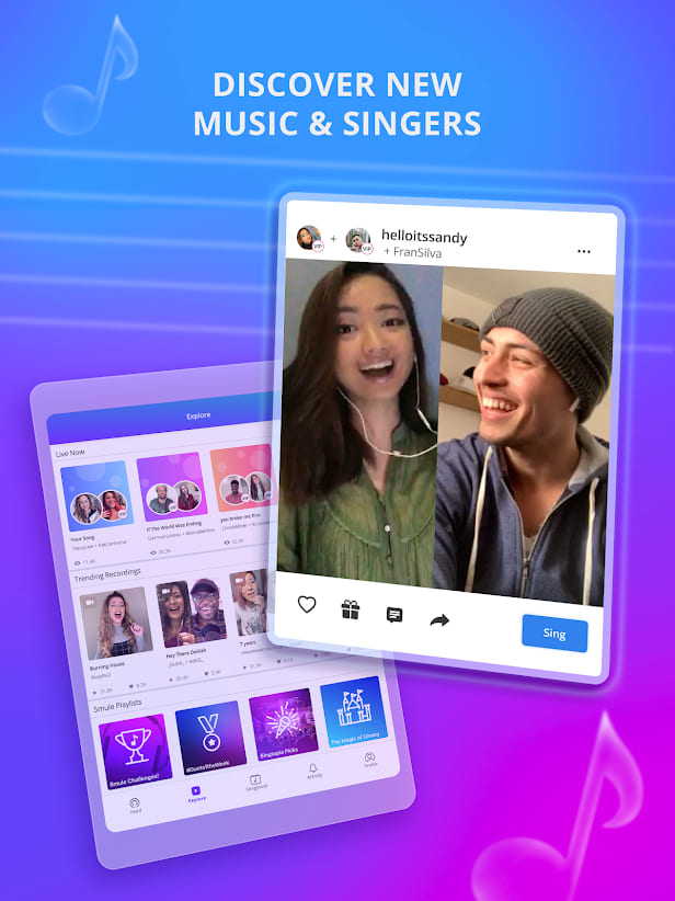 Müzik ile şarkı söyleme uygulaması arayan kullanıcılar için smule apk uygulaması tam size göre. Online olarak diğer kullanıcılar ya da arkadaşınız ile beraber şarkı söyleyebilir ve müzik yapabilirsiniz.